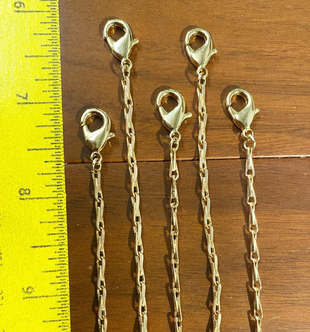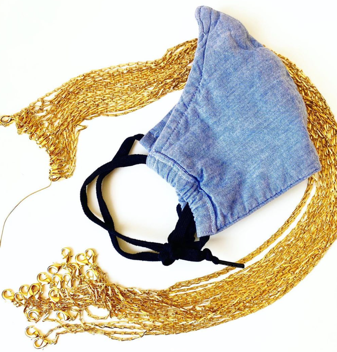 Handmade in Brooklyn, NYC. A vintage brass barley chain has been fashioned into a mask necklace chain. Clipping on to you mask to hold it while being worn (or holding your securely around your neck!) this substantial chain measures 24 inches in length. Chain can be worn as a wrap around bracelet or necklace when not accompanying a mask. 1 chain per order, mask not included.
